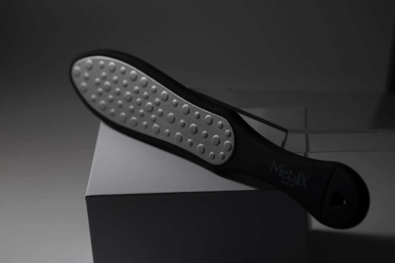 פומפיה מקצועית לעור רגליים יבש של MetaliX היא הכלי המושלם להשגת עור רגליים חלק ורך. הפומפיה עשויה מפלסטיק עמיד ובעלת משטח מגורר ממתכת איכותי, המאפשר הסרה יעילה של עור קשה, יבלות וסדקים. הידית הארגונומית מאפשרת אחיזה נוחה ובטוחה, והופכת את השימוש בפומפיה לקל ונוח.
