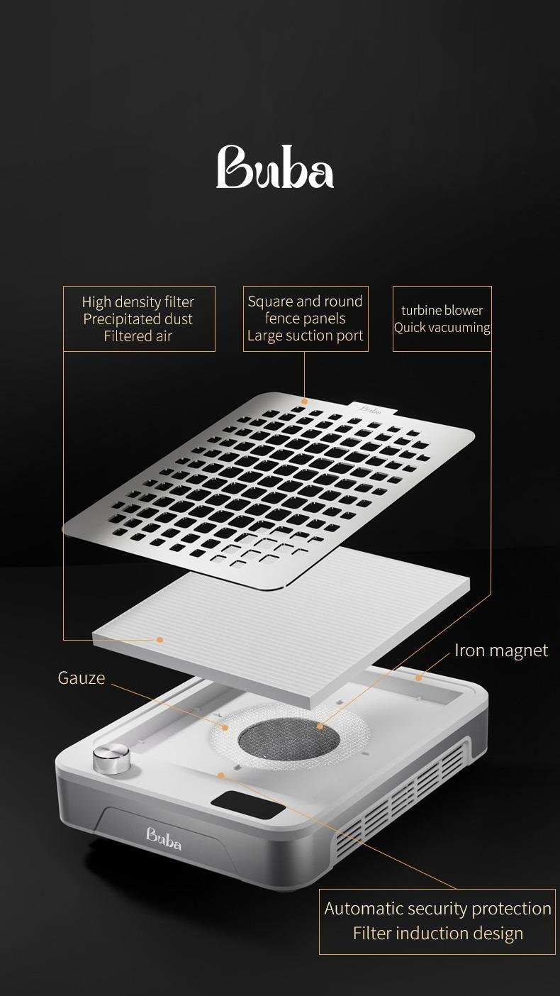 שואב אבק בובה יעיל במיוחד לשיפור איכות האוויר, וגם פריט עיצובי שמוסיף יופי ויוקרה לקליניקה. פשוט לשאוף אוויר נקי יותר – ה-Buba הוא הבחירה המושלמת עבורכם.